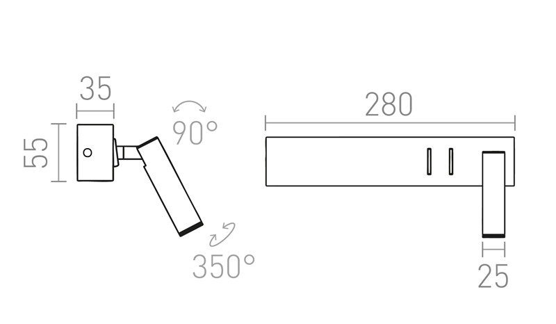 Lampa ścienna LED z regulowanym reflektorem i pośrednim oświetleniem GÓRA/DÓŁ.