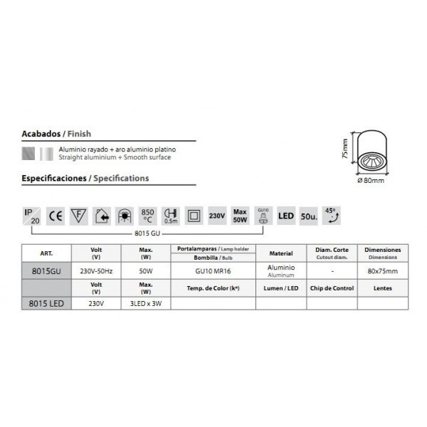 Oprawa natynkowa z możliwością regulacji kątu padania światła 45° w dwóch kierunkach