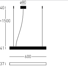 Wymiary: długość 600mm, wysokość 41mm, głębokość 37mm, zwieszenie 1500 mm