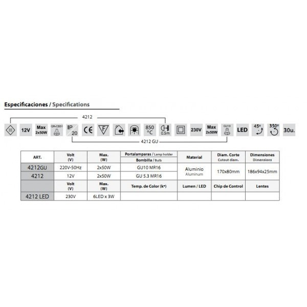Oprawa do wbudowania w suficie podwieszanym. Regulacja wkładu w dwóch kierunkach - 45', -350° wokół osi