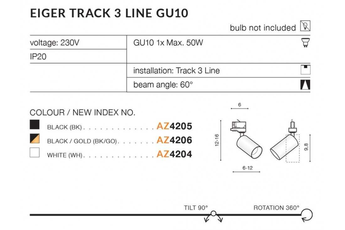 Eiger track 3 line to niewielki reflektor do montażu na szynoprzewodzie trójfazowym. Do tej samej rodziny oprócz niego zaliczają się też dyskretne lampy natynkowe, utrzymane w tej samej stylistyce i wariantach barwnych.